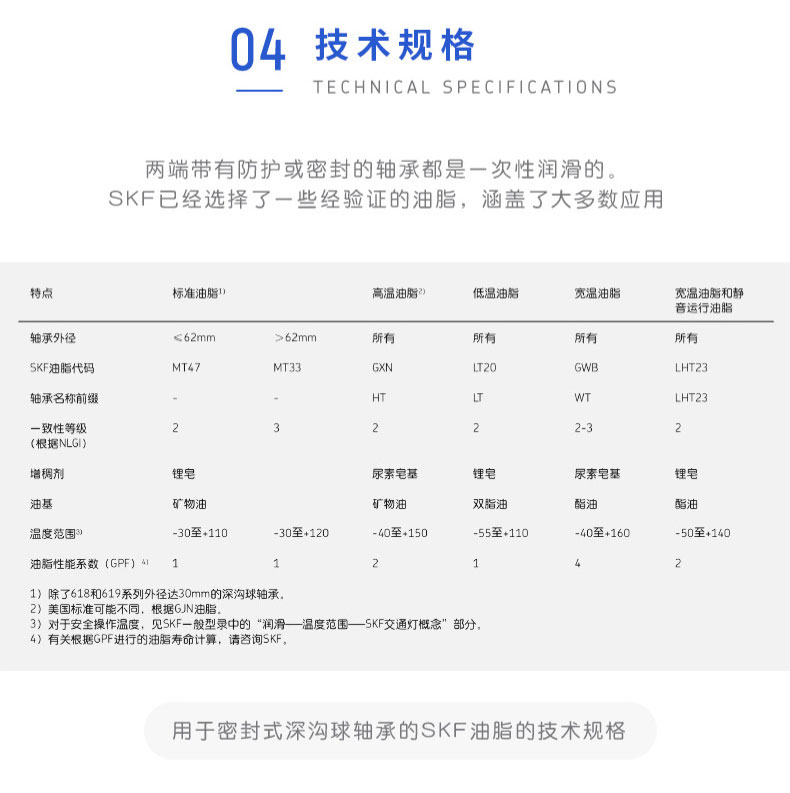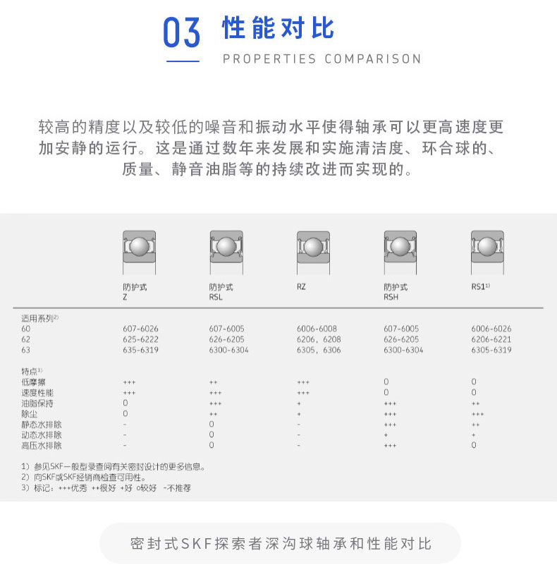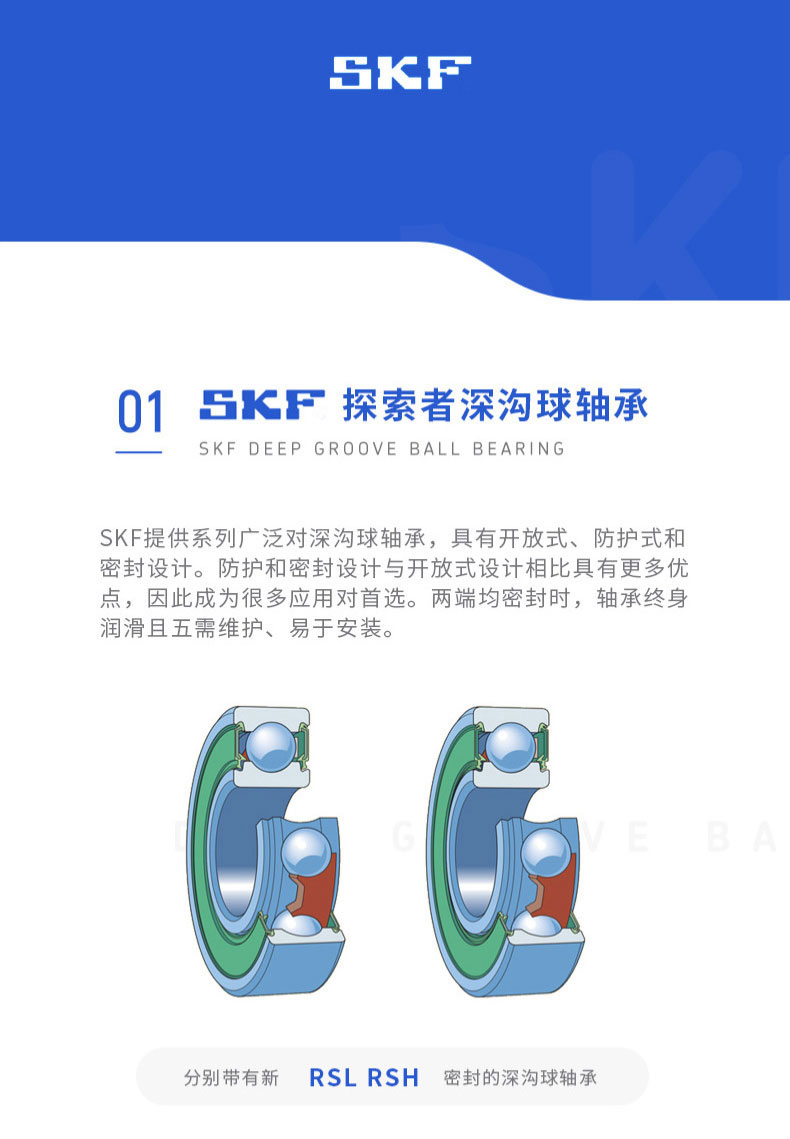 SKF深溝球軸承是一種儀器器件,有開式、雙面帶密封圈,帶密封的軸承在外圈上開有可裝密封圈或防塵蓋的溝槽,適用于高轉(zhuǎn)速甚至極高轉(zhuǎn)速的運(yùn)行。